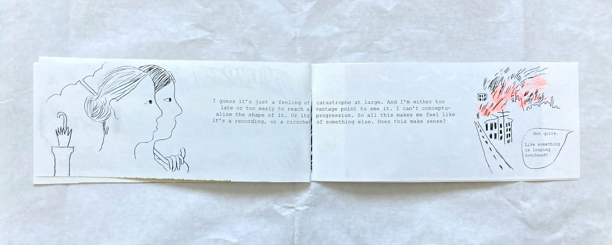 Echo front, Echo back, Edition of 60, accordion booklet printed on Risograph, bound with tape, 2024.